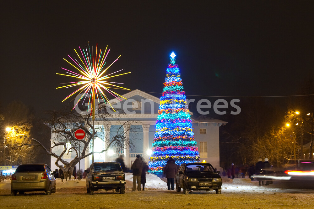 Поставляем ели, шары и гирлянды в Якутию и районы крайнего Севера, где не редки температуры ниже 550 С, а также устанавливаем в места, где имеются сильные ветры